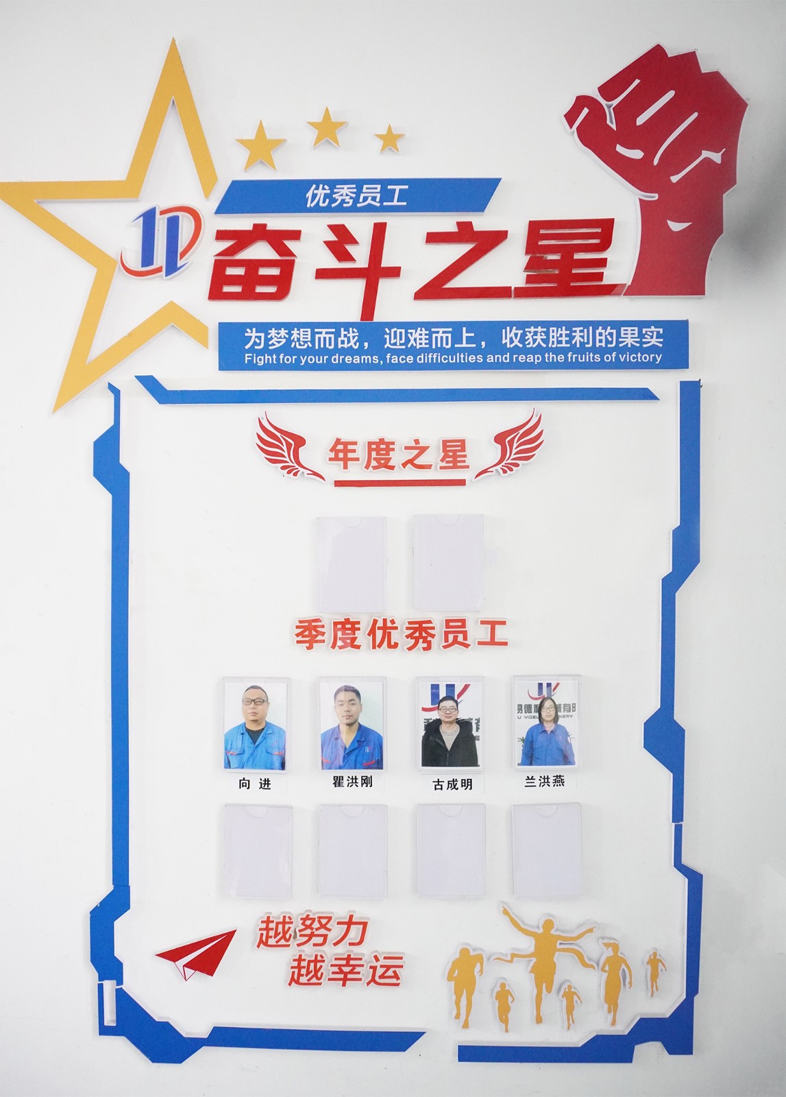 按照公司獎勵制度要求,評選委員會從各部門經(jīng)理推薦的候選人中投票評選出了2021年第三季度的兩位優(yōu)秀員工,分別是技術(shù)部工程師古成明、生產(chǎn)部鉗工組長蘭洪燕。